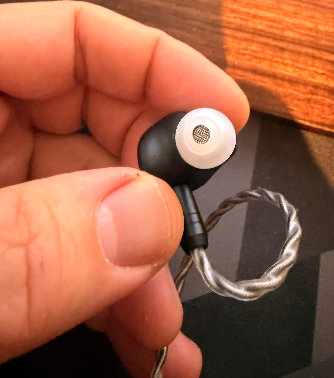 The shells themselves are the interesting part. Fosi uses CNC aluminum with a matte finish, and there are grills on the faceplate that let air in. This is a true open design, not just a small vent. Each earpiece is light, under seven grams, and the shape is friendly. In my ears, they sit deep and steady without hot spots or sharp edges. They do not stick out, and they do not feel heavy after a few hours. This is the kind of fit you can wear in an office or on stage without thinking about it. I had a bit of trouble with my right ear, but it was nothing that swapping the tips didn’t fix.